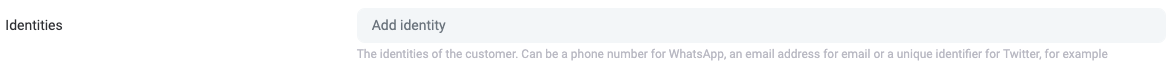 En 'Identidades', puedes proporcionar un número de teléfono para un cliente específico, pero en este ejemplo dejamos este campo vacío.